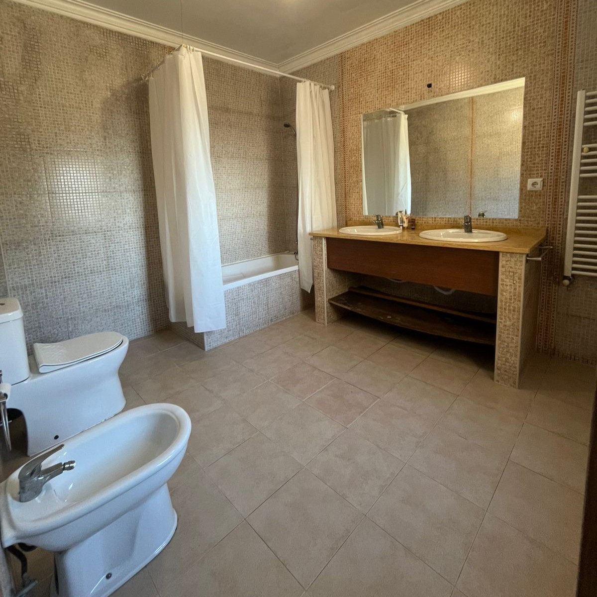 A Casa da Serra tem, junto aos quartos, um quarto de banho com banheira, sanita e bidé.