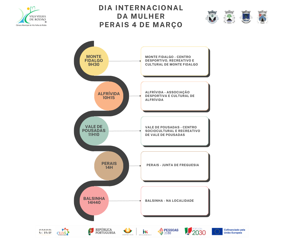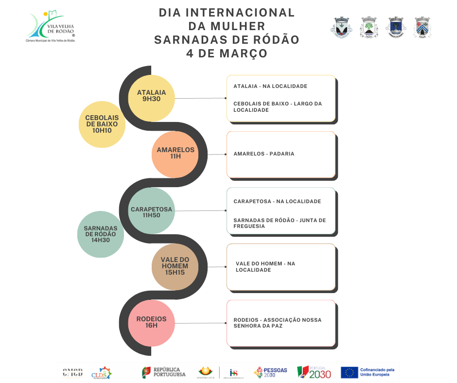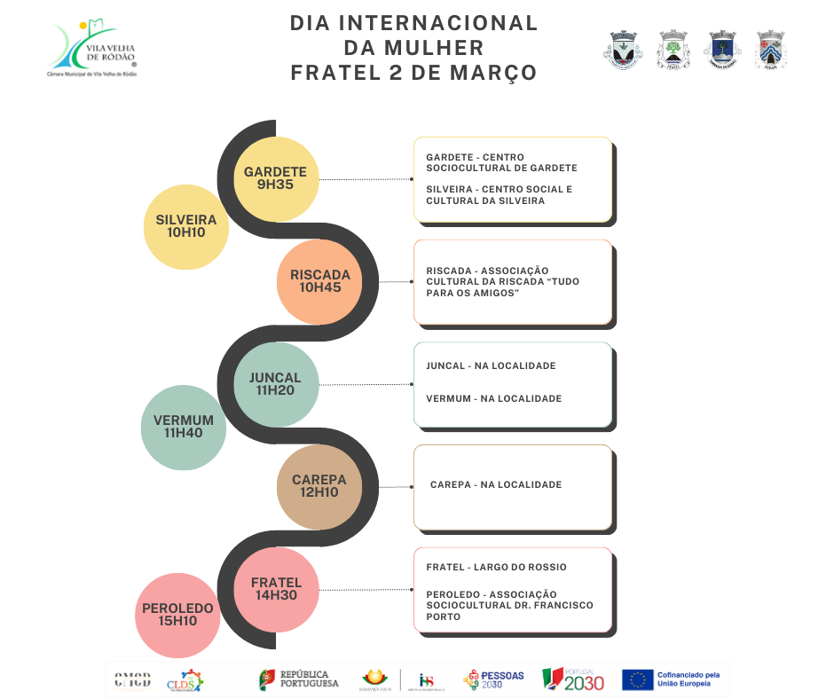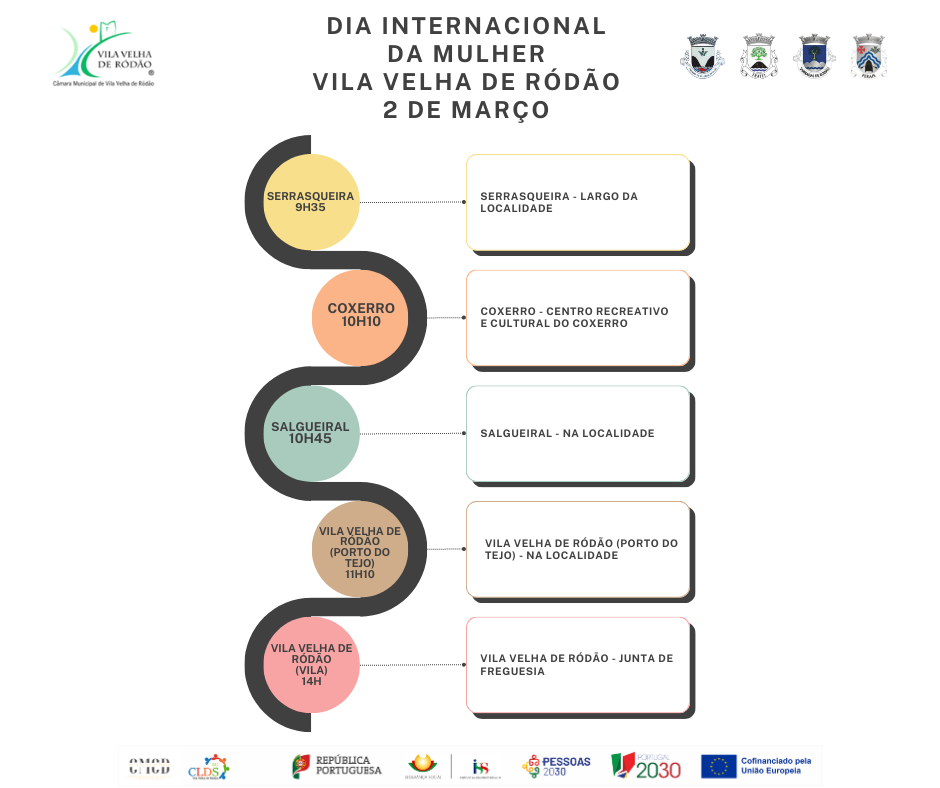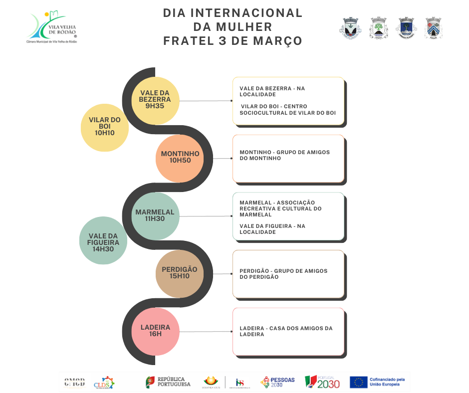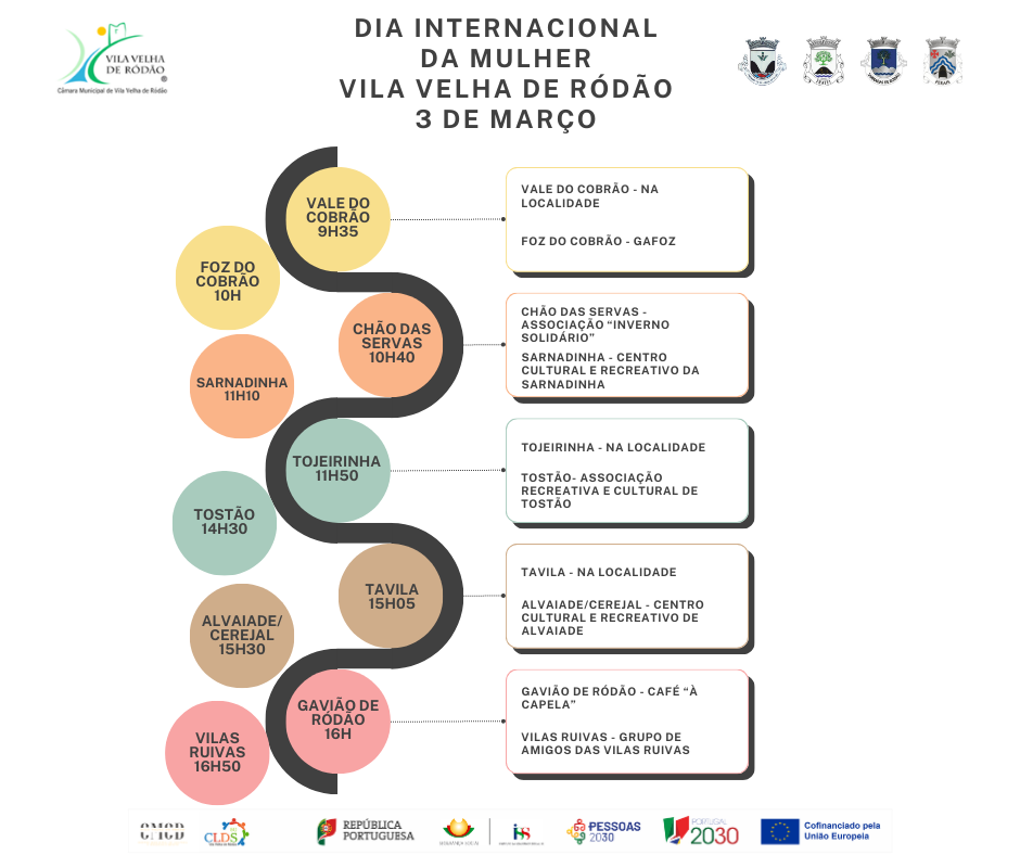 Entre 2 e 4 de março, o Município de Vila Velha de Ródão, em parceria com as quatro Juntas de Freguesia do concelho e o CMCD – Centro Municipal de Cultura e Desenvolvimento, através dos projetos Academia Sénior e CLDS-5G de Vila Velha de Ródão, assinalam o Dia Internacional da Mulher com uma visita às aldeias do concelho.